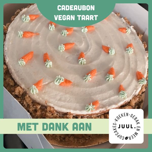Juul. laat op onze markten al een aantal jaar zien dat je de heerlijkste dingen kunt bakken zonder ei. Zij doneert een cadeaubon voor een vegan carrotcake of vegan raspberry taart t.w.v. €30,00!